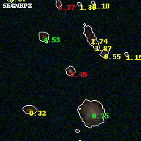 Black segments are analyzed here. Roll mouse over color images to view segments. Best viewed in a wide browser window (1200 pixels or more). Download SED & P(z) plots to view larger versions.