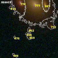 Black segments are analyzed here. Roll mouse over color images to view segments. Best viewed in a wide browser window (1200 pixels or more). Download SED & P(z) plots to view larger versions.