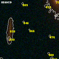 Black segments are analyzed here. Roll mouse over color images to view segments. Best viewed in a wide browser window (1200 pixels or more). Download SED & P(z) plots to view larger versions.