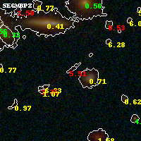 Black segments are analyzed here. Roll mouse over color images to view segments. Best viewed in a wide browser window (1200 pixels or more). Download SED & P(z) plots to view larger versions.