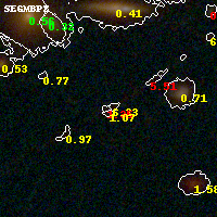Black segments are analyzed here. Roll mouse over color images to view segments. Best viewed in a wide browser window (1200 pixels or more). Download SED & P(z) plots to view larger versions.