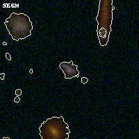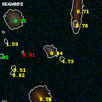 Black segments are analyzed here. Roll mouse over color images to view segments. Best viewed in a wide browser window (1200 pixels or more). Download SED & P(z) plots to view larger versions.