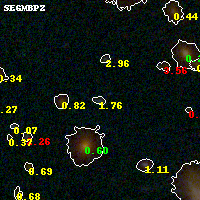 Black segments are analyzed here. Roll mouse over color images to view segments. Best viewed in a wide browser window (1200 pixels or more). Download SED & P(z) plots to view larger versions.