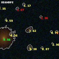 Black segments are analyzed here. Roll mouse over color images to view segments. Best viewed in a wide browser window (1200 pixels or more). Download SED & P(z) plots to view larger versions.