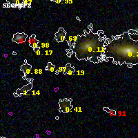 Object #17 x,y = (2171, 3683) RA, Dec = (11:31:55.752, -19:54:11.88) = (172.98230, -19.90330) BPZ = 0.191 [0.085--0.769] type = 11.00 (SB11_A_0_l) chisq2 = 0.29 ODDS = 0.41 z_cluster = 0.307