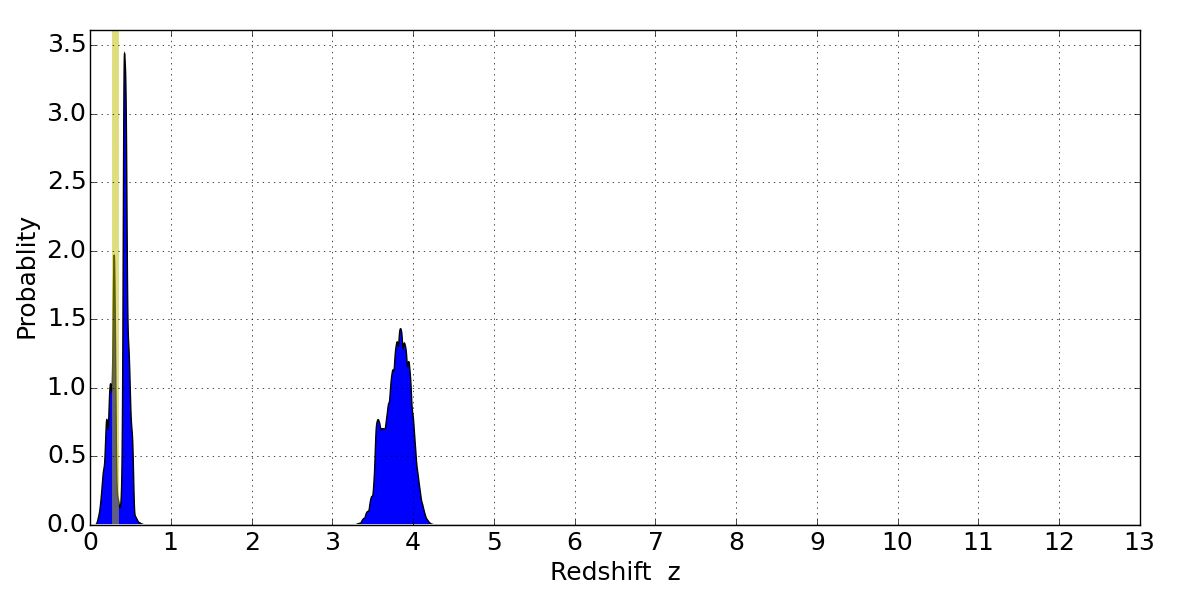 Best viewed in a wide browser window (1200 pixels or more). Download SED & P(z) plots to view larger versions.