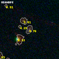 Object #121 x,y = (3414, 3167) RA, Dec = (11:31:50.472, -19:54:42.84) = (172.96030, -19.91190) BPZ = 0.763 [0.687--0.866] type = 8.80 (SB2_B10 - SB1_B10) chisq2 = 0.74 ODDS = 0.84 z_cluster = 0.307