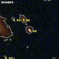 Object #142 x,y = (3122, 3121) RA, Dec = (11:31:51.720, -19:54:45.36) = (172.96550, -19.91260) BPZ = 0.036 [0.014--0.857] type = 7.50 (SB1_B10 - Scd_B10) chisq2 = 0.34 ODDS = 0.71 z_cluster = 0.307