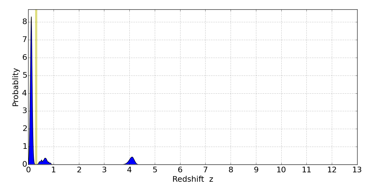 Best viewed in a wide browser window (1200 pixels or more). Download SED & P(z) plots to view larger versions.