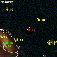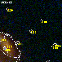 Object #269 x,y = (2175, 2909) RA, Dec = (11:31:55.752, -19:54:58.32) = (172.98230, -19.91620) BPZ = 0.652 [0.408--4.406] type = 9.00 (SB2_B10) chisq2 = 1.04 ODDS = 0.26 z_cluster = 0.307