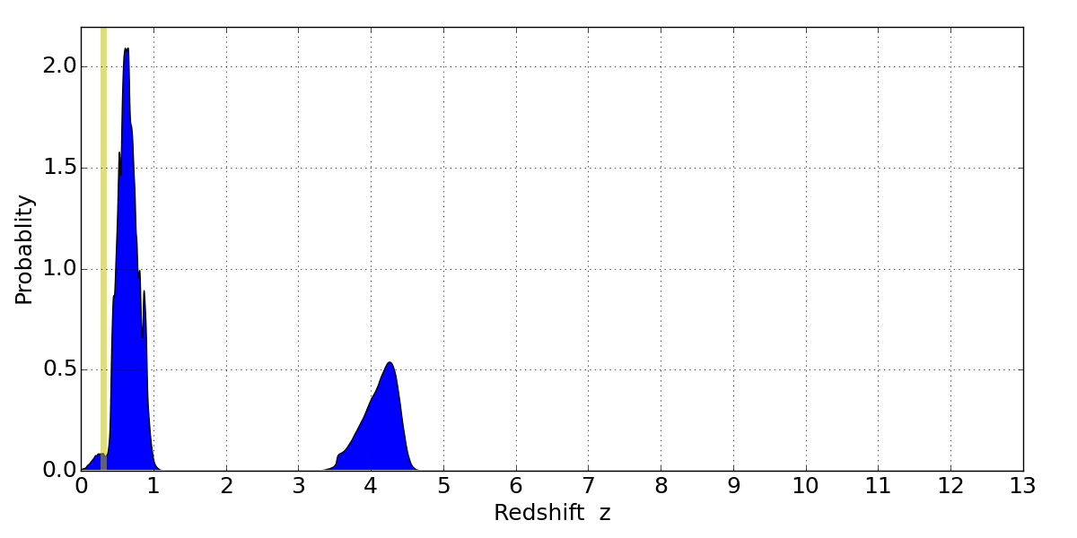 Best viewed in a wide browser window (1200 pixels or more). Download SED & P(z) plots to view larger versions.