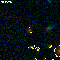 Object #3 x,y = (2094, 3785) RA, Dec = (11:31:56.088, -19:54:05.76) = (172.98370, -19.90160) BPZ = 0.721 [0.527--0.896] type = 8.00 (SB1_B10) chisq2 = 0.51 ODDS = 0.62 z_cluster = 0.307