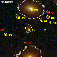 Object #443 x,y = (2776, 2601) RA, Dec = (11:31:53.184, -19:55:16.68) = (172.97160, -19.92130) BPZ = 0.153 [0.089--4.018] type = 4.50 (ES0_B10 - Ell4_A_0) chisq2 = 0.44 ODDS = 0.62 z_cluster = 0.307