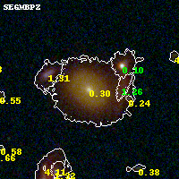 Object #498 x,y = (1780, 2465) RA, Dec = (11:31:57.432, -19:55:24.96) = (172.98930, -19.92360) BPZ = 0.298 [0.217--0.346] type = 4.30 (Ell4_A_0 - ES0_B10) chisq2 = 0.06 ODDS = 0.81 z_cluster = 0.307