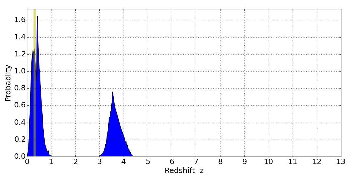 Best viewed in a wide browser window (1200 pixels or more). Download SED & P(z) plots to view larger versions.