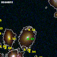 Object #662 x,y = (3355, 2177) RA, Dec = (11:31:50.736, -19:55:42.24) = (172.96140, -19.92840) BPZ = 0.316 [0.190--4.073] type = 3.00 (Ell5_A_0) chisq2 = 0.12 ODDS = 0.61 z_cluster = 0.307