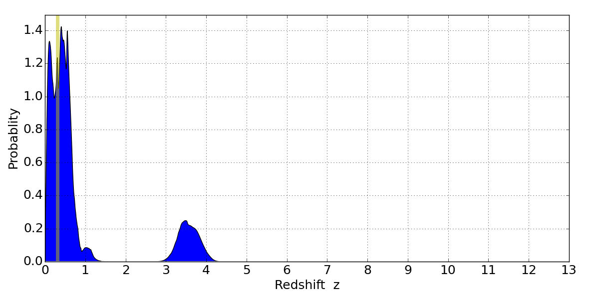 Best viewed in a wide browser window (1200 pixels or more). Download SED & P(z) plots to view larger versions.