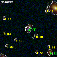 Object #770 x,y = (3141, 2003) RA, Dec = (11:31:51.648, -19:55:52.68) = (172.96520, -19.93130) BPZ = 2.413 [2.292--2.492] type = 9.00 (SB2_B10) chisq2 = 0.09 ODDS = 0.98 z_cluster = 0.307