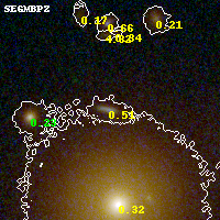 Object #85 x,y = (2789, 3323) RA, Dec = (11:31:53.136, -19:54:33.48) = (172.97140, -19.90930) BPZ = 0.508 [0.085--0.605] type = 8.20 (SB1_B10 - SB2_B10) chisq2 = 0.05 ODDS = 0.71 z_cluster = 0.307