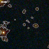 Object #876 x,y = (2123, 1833) RA, Dec = (11:31:55.968, -19:56:02.76) = (172.98320, -19.93410) BPZ = 3.971 [0.501--4.344] type = 9.20 (SB2_B10 - SB3_B10) chisq2 = 0.44 ODDS = 0.58 z_cluster = 0.307