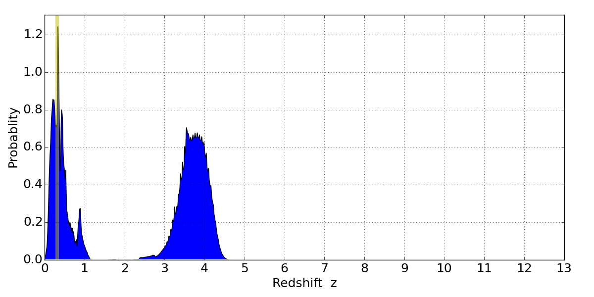 Best viewed in a wide browser window (1200 pixels or more). Download SED & P(z) plots to view larger versions.