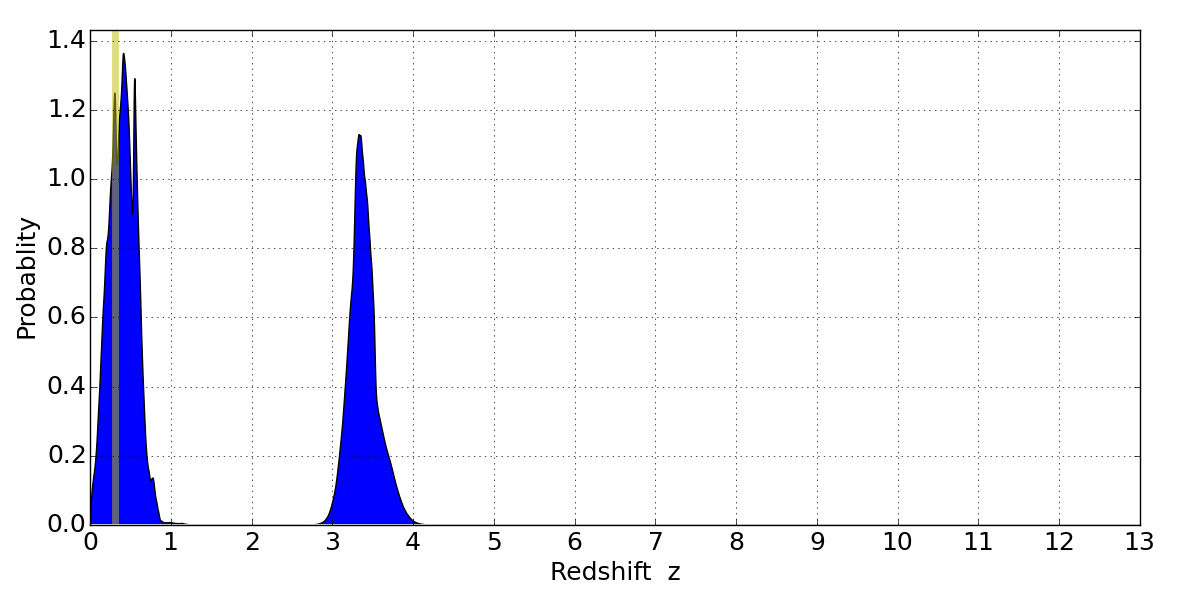 Best viewed in a wide browser window (1200 pixels or more). Download SED & P(z) plots to view larger versions.