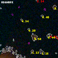 Black segments are analyzed here. Roll mouse over color images to view segments. Best viewed in a wide browser window (1200 pixels or more). Download SED & P(z) plots to view larger versions.