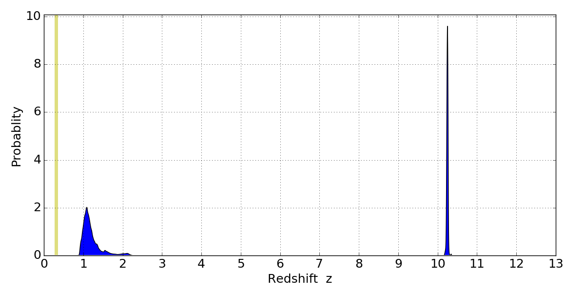 Best viewed in a wide browser window (1200 pixels or more). Download SED & P(z) plots to view larger versions.