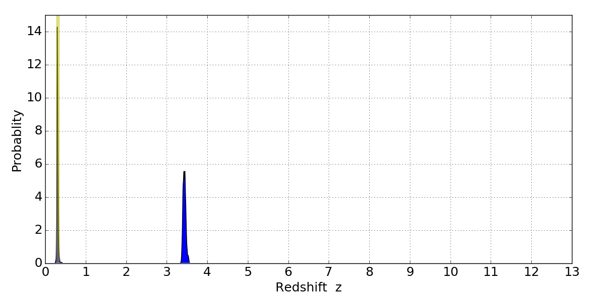 Best viewed in a wide browser window (1200 pixels or more). Download SED & P(z) plots to view larger versions.