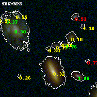 Object #2009 x,y = (3044, 1943) RA, Dec = (13:32:51.000, 50:30:59.76) = (203.21250, 50.51660) BPZ = 0.337 [0.103--3.700] type = 8.40 (SB1_B10 - SB2_B10) chisq2 = 0.58 ODDS = 0.19 z_cluster = 0.280