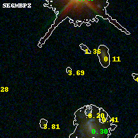 Object #293 x,y = (5393, 5148) RA, Dec = (13:32:36.216, 50:34:12.00) = (203.15090, 50.57000) BPZ = 3.687 [0.221--4.285] type = 9.20 (SB2_B10 - SB3_B10) chisq2 = 0.34 ODDS = 0.38 z_cluster = 0.280