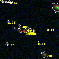 Object #1113 x,y = (2903, 3064) RA, Dec = (13:32:51.912, 50:32:07.08) = (203.21630, 50.53530) BPZ = 0.941 [0.699--1.783] type = 3.00 (Ell5_A_0) chisq2 = 0.94 ODDS = 0.39 z_cluster = 0.280
