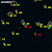 Object #1438 x,y = (1715, 2426) RA, Dec = (13:32:59.376, 50:31:28.56) = (203.24740, 50.52460) BPZ = 0.594 [0.413--3.903] type = 8.80 (SB2_B10 - SB1_B10) chisq2 = 1.29 ODDS = 0.40 z_cluster = 0.280