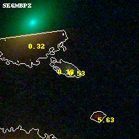 Object #32 x,y = (4937, 5630) RA, Dec = (13:32:39.096, 50:34:41.16) = (203.16290, 50.57810) BPZ = 0.527 [0.429--0.628] type = 8.50 (SB2_B10 - SB1_B10) chisq2 = 0.13 ODDS = 0.75 z_cluster = 0.280