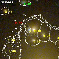 Object #477 x,y = (5008, 4679) RA, Dec = (13:32:38.640, 50:33:43.92) = (203.16100, 50.56220) BPZ = 0.300 [0.261--0.371] type = 7.70 (SB1_B10 - Scd_B10) chisq2 = 0.04 ODDS = 0.92 z_cluster = 0.280