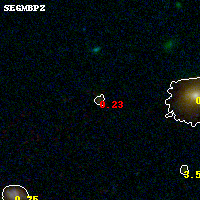 Object #57 x,y = (3686, 5514) RA, Dec = (13:32:46.968, 50:34:33.96) = (203.19570, 50.57610) BPZ = 0.226 [0.117--4.011] type = 4.00 (Ell4_A_0) chisq2 = 1.55 ODDS = 0.28 z_cluster = 0.280
