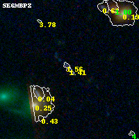 Object #943 x,y = (3898, 3635) RA, Dec = (13:32:45.648, 50:32:41.28) = (203.19020, 50.54480) BPZ = 1.412 [0.487--2.602] type = 9.80 (SB3_B10 - SB2_B10) chisq2 = 0.15 ODDS = 0.12 z_cluster = 0.280