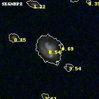 Object #424 x,y = (5861, 4990) RA, Dec = (13:32:33.264, 50:34:02.64) = (203.13860, 50.56740) BPZ = 0.541 [0.443--0.619] type = 8.40 (SB1_B10 - SB2_B10) chisq2 = 0.12 ODDS = 0.83 z_cluster = 0.280
