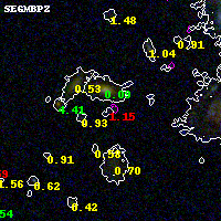 Black segments are analyzed here. Roll mouse over color images to view segments. Best viewed in a wide browser window (1200 pixels or more). Download SED & P(z) plots to view larger versions.