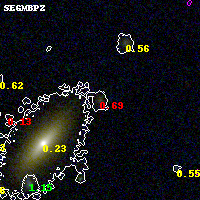 Black segments are analyzed here. Roll mouse over color images to view segments. Best viewed in a wide browser window (1200 pixels or more). Download SED & P(z) plots to view larger versions.