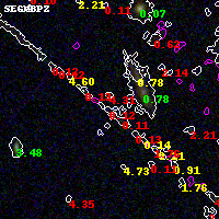 Black segments are analyzed here. Roll mouse over color images to view segments. Best viewed in a wide browser window (1200 pixels or more). Download SED & P(z) plots to view larger versions.
