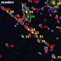 Black segments are analyzed here. Roll mouse over color images to view segments. Best viewed in a wide browser window (1200 pixels or more). Download SED & P(z) plots to view larger versions.