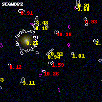 Black segments are analyzed here. Roll mouse over color images to view segments. Best viewed in a wide browser window (1200 pixels or more). Download SED & P(z) plots to view larger versions.
