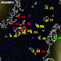 Black segments are analyzed here. Roll mouse over color images to view segments. Best viewed in a wide browser window (1200 pixels or more). Download SED & P(z) plots to view larger versions.