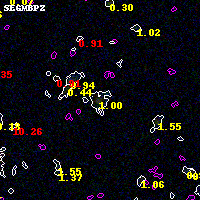 Black segments are analyzed here. Roll mouse over color images to view segments. Best viewed in a wide browser window (1200 pixels or more). Download SED & P(z) plots to view larger versions.
