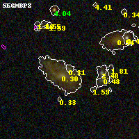 Black segments are analyzed here. Roll mouse over color images to view segments. Best viewed in a wide browser window (1200 pixels or more). Download SED & P(z) plots to view larger versions.