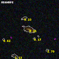 Black segments are analyzed here. Roll mouse over color images to view segments. Best viewed in a wide browser window (1200 pixels or more). Download SED & P(z) plots to view larger versions.