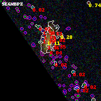 Black segments are analyzed here. Roll mouse over color images to view segments. Best viewed in a wide browser window (1200 pixels or more). Download SED & P(z) plots to view larger versions.