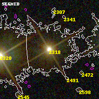 Black segments are analyzed here. Roll mouse over color images to view segments. Best viewed in a wide browser window (1200 pixels or more). Download SED & P(z) plots to view larger versions.