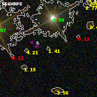 Black segments are analyzed here. Roll mouse over color images to view segments. Best viewed in a wide browser window (1200 pixels or more). Download SED & P(z) plots to view larger versions.
